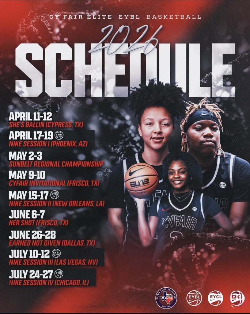Here is the schedule for CyFair Elite 16u EYCL 2026 summer